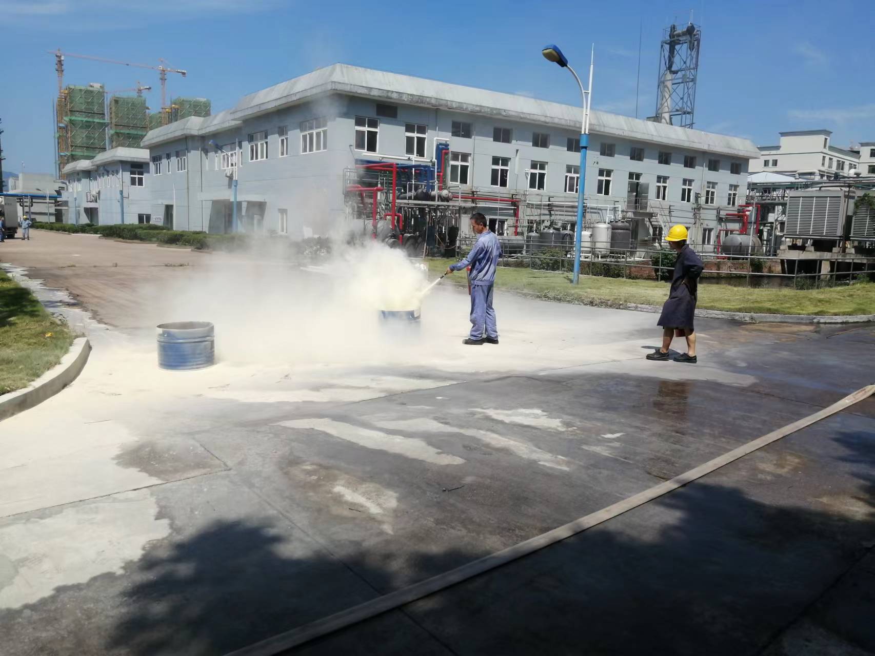 2、滅火器滅火比賽。每一個(gè)人一組,隊(duì)員從指定地點(diǎn)跑到滅火區(qū)向滅火桶內(nèi)噴射滅火劑噴完滅火劑計(jì)時(shí)結(jié)束。以時(shí)間從短到長進(jìn)行排名。