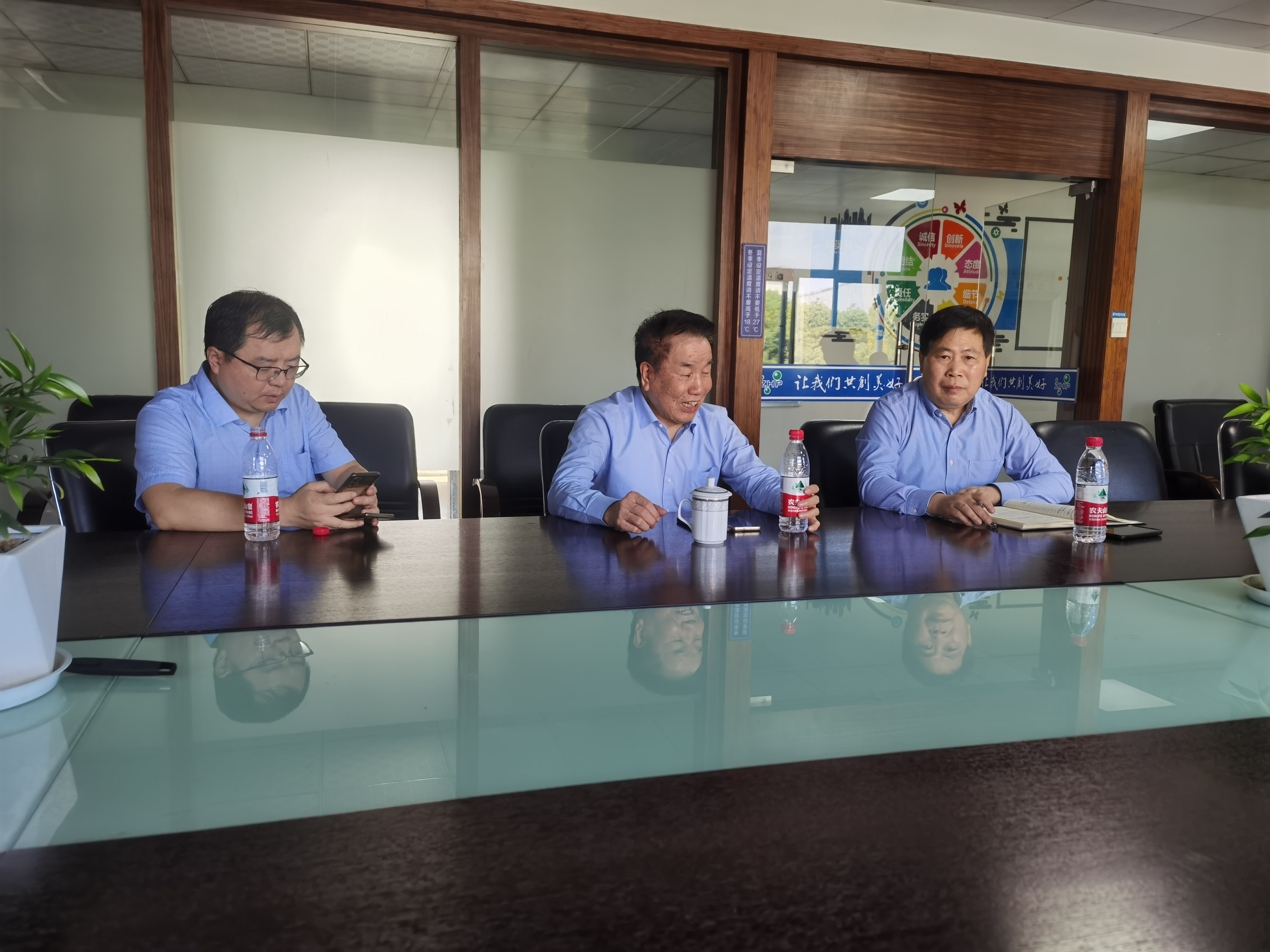 10月30日下午,控股公司李邦良董事長、李閱東總經(jīng)理一行蒞臨我公司指導(dǎo),并在公司董事長王井明等領(lǐng)導(dǎo)干部的陪同下實(shí)地走訪了車間。